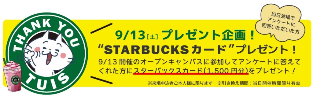 9月13日(土)オープンキャパス開催(スタバカードプレゼント+入試対策講座あり)